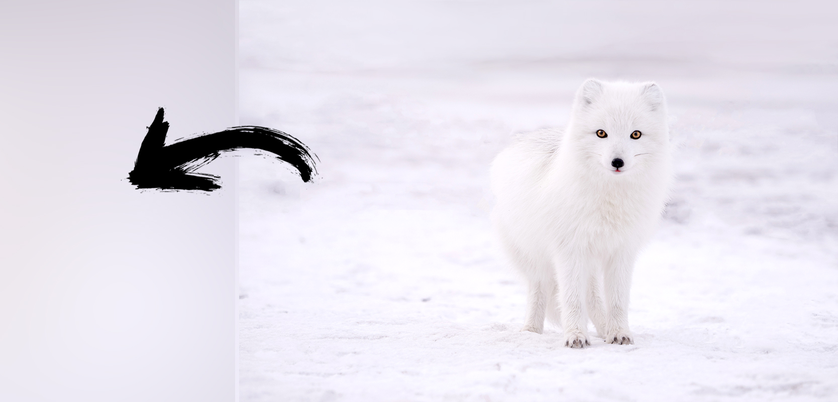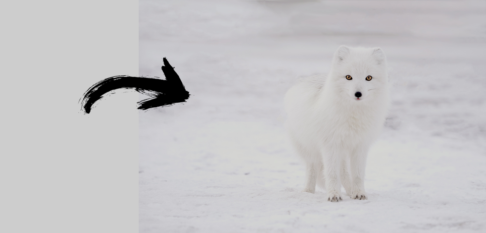 Wanneer je fotografeert in een lichte en luchtige scène of in een donkere en sombere scène kan je camera daar geen verschil in maken. In plaats daarvan converteert je camera het plaatje naar zwart wit en telt alle tonen bij elkaar op en berekend de gemiddelde toon. Dit kan je vergelijken met wanneer je het plaatje zo ver vervaagd tot je één monotone kleur overhoud. Bijvoorbeeld, als je kijkt naar het plaatje van de poolvos hieronder is de gemiddelde toon van de bovenste foto vrij licht, lichter dan de 18% grijs waar je camera op mikt. Maar het is wel de belichting zoals jij, als fotograaf, hem waarschijnlijk het liefst ziet. Het meeste van het plaatje (de sneeuw en de vacht van de poolvos) is wit, ook in de werkelijkheid, in plaats van grijs.