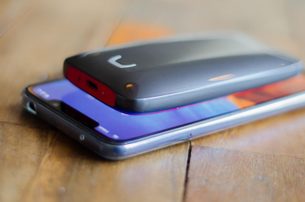 Ik haal de schijf uit een mooie verpakking. Er zit een kartonnen hoes om de doos zelf heen waar de schijf in zit, op de kartonnen hoes vind je de informatie over de schijf zelf. In de doos vind je de schijf (Samsung Portable SSD X5 met de dimensies 119 x 62 x 19,6 mm en een gewicht van 150 gram), uitgerust met een grijze bovenkant en een felrode kunststof onderkant. Deze rode onderkant zorgt ervoor dat de schijf wat stroever is en niet zomaar van een oppervlak zoals een tafel of bureau af zal schuiven. Al claimt de fabrikant wel dat het geen probleem is om de schijf te laten vallen, zelfs een val van 2 meter zou probleemloos moeten kunnen. Moedwillig de schijf laten vallen heb ik niet gedaan overigens maar de schijf geeft de indruk dat de fabrikant gelijk heeft.